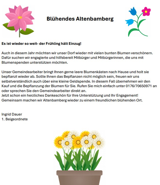 Durch die Dorferneuerung soll eine nachhaltige und zukunftsbeständige Entwicklung des Dorfes unterstützt und das Dorf als eigenständiger Wohn-, Arbeits-, Sozial- und Kulturraum erhalten und weiterentwickelt werden.